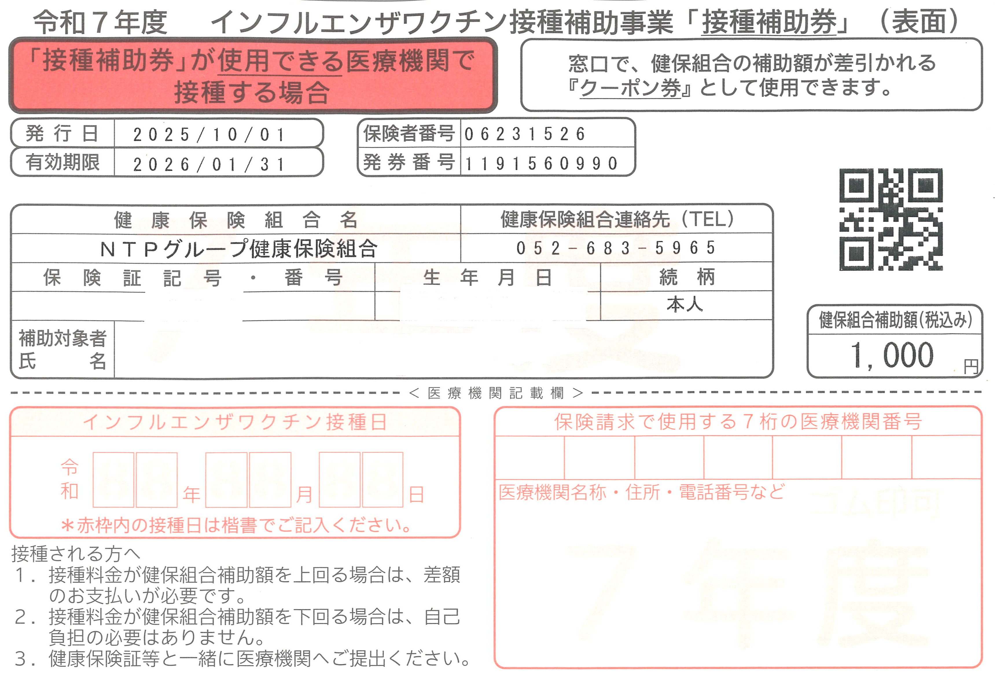 今年度もインフルエンザ予防接種補助を行います。